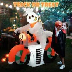 Costway 5 FT Halloween Inflatable Ghost Riding on Motor Bike Yard Decor w/ LED Lights
