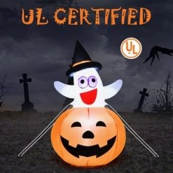Costway 5 FT Inflatable Halloween Pumpkin Ghost Blow-up Yard Decoration with LED Lights