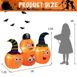 Costway 5 FT Long Halloween Inflatable Decoration 4 Pumpkin Lanterns Combo with Pirate