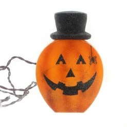 Stony Creek 7.5″ Lighted Pumpkin With Hat Spider Jack O Lantern – Novelty Sculpture Lights