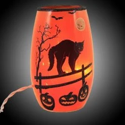 Stony Creek 5.0″ Halloween Pre-Lit Small Vase. Witch Cat Haunted Moon – Novelty Sculpture Lights