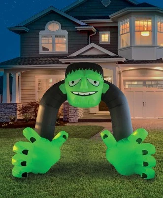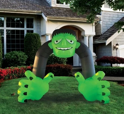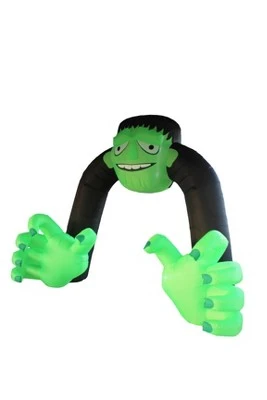 Looking for an attention-grabbing Halloween decoration that will make your house stand out on the block? Look no further than this towering 13ft tall Frankenstein archway! Featuring big green hands on either side, this inflatable decoration will create a spooky yet playful atmosphere that’s perfect for greeting trick-or-treaters. Frankenstein stands at the center of the archway, with his menacing glare and signature bolts adding to the overall eerie effect. Easy to set up and take down, this inflatable archway is sure to become a beloved addition to your Halloween decor collection for years to come. Don’t miss out on the chance to make a big impression this Halloween with this impressive Frankenstein archway!