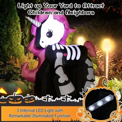 Are you looking for a funny inflatable skeleton unicorn that can light up your home for a festival Halloween atmosphere. Our 5.5ft inflatable skeleton unicorn is your ideal choice!