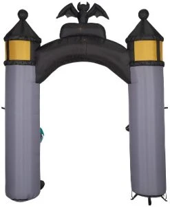 Create a grand entrance with an Airblown® Inflatable Halloween Town archway! Fans of The Nightmare Before Christmas will love this amazing Halloween archway emblazoned with a “Welcome to Halloween Town” message. Styled as two cement pillars topped with lanterns and a spooky bat, this The Nightmare Before Christmas Halloween inflatable features Jack Skellington and his leading lady Sally. It makes an eye-catching addition to your Halloween decorations. Setup is super simple. Just plug it in, stake it down and watch the magic unfold. Be the talk of the block with a Halloween Town inflatable archway! Includes everything needed for easy outdoor setup.