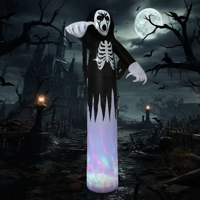 - Show Your Festiveness: You and your neighbors are going to freak at the spooky factor of this skeleton ghost Halloween inflatable. This is going to bring your outdoor holiday madness to new heights and provide days of enjoyment to those hooligan onlookers.
