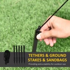 - Mild Wind Or Rain? No Problem: On Halloween night, you’re still going to want to scare the pants off your neighbors even if the weatherman disagrees. Included are five stakes, three drawstrings, and a sandbag to keep your Halloween decor from turning into a parachute in the almost-likely event of a windy night.