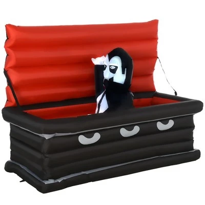 - Show Your Festiveness: You and your neighbors are going to freak at the scary factor of this vampire and coffin Halloween inflatable. This is going to bring your outdoor holiday madness to new heights and provide days of enjoyment to those hooligan onlookers.