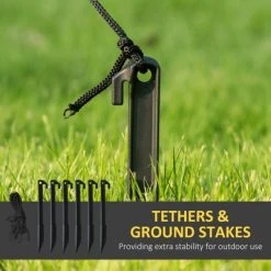 - Mild Wind Or Rain? No Problem: For those more temperamental Halloweens, you’re still going to want to scare the pants off your neighbors. Included six stakes and two drawstrings to keep your Halloween outdoor decorations from turning into a parachute in the almost-likely event of a windy night.