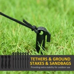 - Mild Wind or Rain? No Problem: You’ll still want to scare the pants off your neighbors during those more temperamental Halloweens. Included are stakes, drawstrings, sandbags, and material that resists tearing, which will keep your outdoor Halloween decorations from turning into a parachute in the almost-likely event of a windy night.