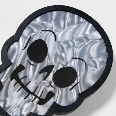 Add some fun, fright and light to your Halloween decor with this 12-Inch LED Hanging Skull with Flame Effect Halloween Novelty Silhouette Light from Hyde & EEK! Boutique™. Made of plastic, the battery-powered light is designed like a skull embedded with 45 green LED bulbs that emit a flame-effect flickering glow to give off a spook-tacular seasonal shine. Plus, the novelty silhouette light comes with an on/off timer mode for versatile use anywhere inside or outside of your home.