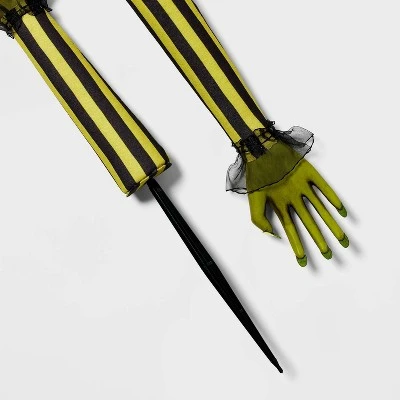 Spookify your outdoors with these 2-Piece Witch Hands Yard Stakes Halloween Decor from Hyde & EEK! Boutique™. These decorative yard stakes are designed as a witch’s hands in black and green stripes with black gloves featuring pointed nails to bring Halloween charm to your festive decor. Easy to stake anywhere in your garden or lawn, you can display these witch hand stakes on their own or beside other Halloween props for added fun.