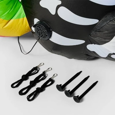 Surprise the guests with a mix of whimsical and spooky decor with the 5-Foot LED Inflatable Skeleton Unicorn Halloween Decoration from Hyde & EEK! Boutique™. This inflatable skeleton unicorn Halloween decoration features a skeleton illustration on the body and rainbow-color hair, tail and horns to add a bit of color. This lit Halloween decoration creates a striking look whether you display it indoors or outdoors. Best of all, it includes plastic ties and ground stakes for added convenience.