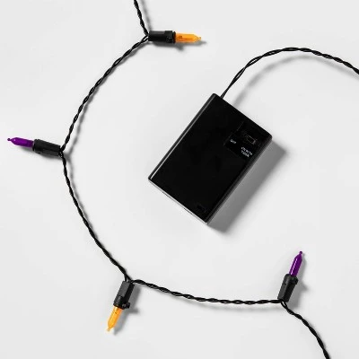 You’ll appreciate the additional lighting and convenience these 60ct LED Battery Operated Halloween Mini String Lights from Hyde & EEK! Boutique™ bring to your seasonal decor. Great for bringing a flexible and fun lighting option to your indoor space, these mini string lights consist of 60 LED smooth purple and orange bulbs on a black wire that give off a cool multicolored glow. Whether you string them along a mantel or place them inside a Halloween prop, you’ll love the way they glow.