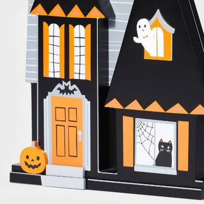 Complete your frighteningly festive display with the Wood Mini Mantle House Halloween Decor from Hyde & EEK! Boutique™. The decorative prop features a mini mantle house with cat and ghost on the windows and bats flying in the backdrop to amp up the look of your decor. Whether kept on the mantle or entryway table, this mini decorative prop makes a great pairing with other Halloween-themed decor.