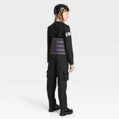 Your kid will look and feel like their hero on Halloween night in this SWAT Officer Halloween Costume Jumpsuit with Accessories from Hyde & EEK! Boutique™. Crafted from lightweight material, the costume set includes a walkie talkie, SWAT vest, jumpsuit and helmet. The side patch pockets add functional detail to their look, while the back hook-and-loop closure offers ease of wear. Pair with black shoes to complete the look.