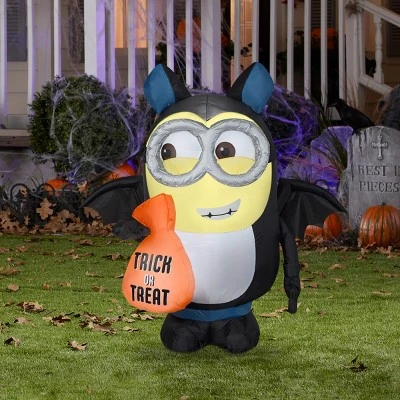 Entertain neighbors and guests with this light-up Airblown inflatable decoration. Featuring one of the stars of Universal Pictures “Despicable Me” movie franchise, minion Dave in a bat costume. Includes two white LED lights to enhance the Halloween experience.