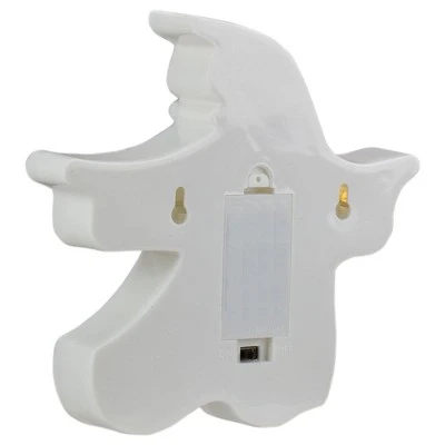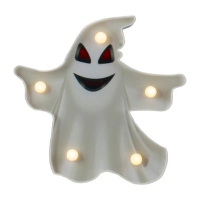 Add some light to your Halloween decor with this illuminated marquee sign. It features an eerie ghost and will be sure to send a chill down your spine. Great for parties or use as a nightlight. Product Features:Illuminated by 5 LED lightsColor: warm white bulbsOne-sided designLED lights use up to 90% less energy Bulbs stay cool to the touchRequires (2) AA size batteries; not includedConvenient on/off switch on the backComes ready-to-hang with keyhole hooks on the backRecommended for indoor decorative use onlyDimensions: 7″H x 7″W x 1″DMaterial(s): plastic
