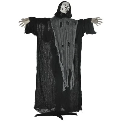 - Show Your Festiveness: You and your neighbors are going to be afraid at the outdoor Halloween decoration of this grim reaper, wearing a black hooded robe. This will send chills down your spine.