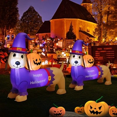 - Versatile Use for Decoration: This Halloween inflatable dachshund dog is designed to dress up your yard for perfect display. Its vivid expressions and bright LED lights create an impressive display effect. Perfect for Halloween outdoor decorations in the garden, front yard, back yard or party, etc. Also can be used as any other holiday decoration