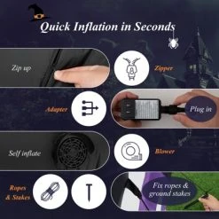 - Complete Accessories: The Halloween pumpkin reaper contains multiple built-in components like zipper and air blower for convenience. In addition, the package provides 4 ground stakes, 4 tether ropes and 1 UL approved adaptor to help you complete assembly and ensure high stability.