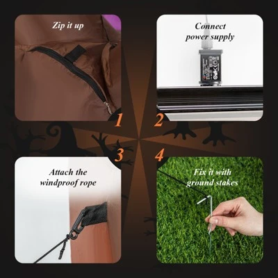 - All-included Package: In addition to all these accessories above, the Halloween decoration also comes with 2 windproof ropes and 4 metal ground stakes, which can help peg the decoration on the ground and prevent it from being blown away. More importantly, inside the tree, there is also a sandbag to add stability.