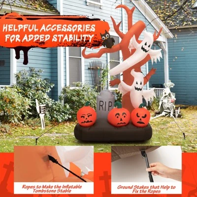 - Fancy Dead Tree Appearance: Our glowing inflatable is a dead tree with 2 white ghosts and a cute owl, and at the base of the tree, three pumpkin heads placed side by side next to the tombstone. The unique look makes kids fall in love at first sight. Plant an 8ft inflatable dead tree in your yard and the Halloween vibe spreads.