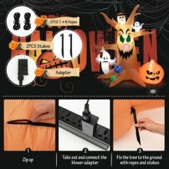 - Product Information: Apart from an operating instruction, this 8-foot Halloween Spooky Tree will come with 2 ground stakes, 2 ropes and 1 built-in sand bag in order to enhance stability when it is in use. You can refer to the detailed instruction when using this Halloween inflatable tree
